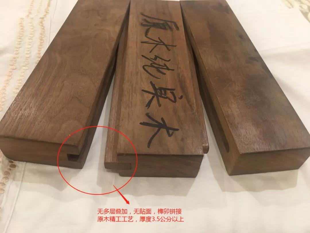 所以我們?cè)诒鎰e的時(shí)候要認(rèn)準(zhǔn)這樣一個(gè)概念——“原木純實(shí)木”。原木純實(shí)木要求木材無(wú)貼面、無(wú)輔材、無(wú)修色,同時(shí)對(duì)工藝也有一定要求。例如臺(tái)面厚度達(dá)到3.5公分以上,用平板穿榫老底子榫卯工藝,所有柜體背板采用360°無(wú)膠新版插槽工藝等等,不但材料是純實(shí)木的,工藝也是純實(shí)木的。