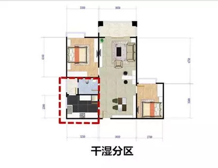 ??衛生間、廚房、工作陽臺都視為房子的濕區,需要與客廳、飯廳、臥室這些需保持干爽的區域有一定的隔分。同時衛生間、廚房都需要有窗戶,可以通風采光,使得濕區也能快速恢復干爽。