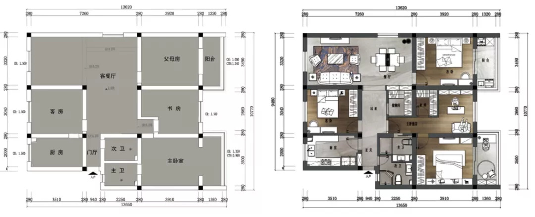 本案業(yè)主是位修養(yǎng)極佳、追求完美、考慮周全的人,設計師以現(xiàn)代簡約風格為底,前后出了五個設計方案并展示了大量參考圖,最終和業(yè)主敲定了方案。