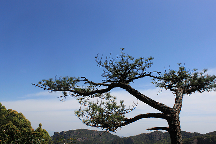 我們經(jīng)過“問仙橋”,走著那清涼的石子小路,來到“神筆畫天”面前,看呀,那座山的山坳里露出了一個毛筆頭,筆尖對著天空,漸漸飄來的白云,好像是它那杰出的作品。真不知是哪位神仙把那么珍貴的寶物丟在了神仙居這廣闊的土地上。