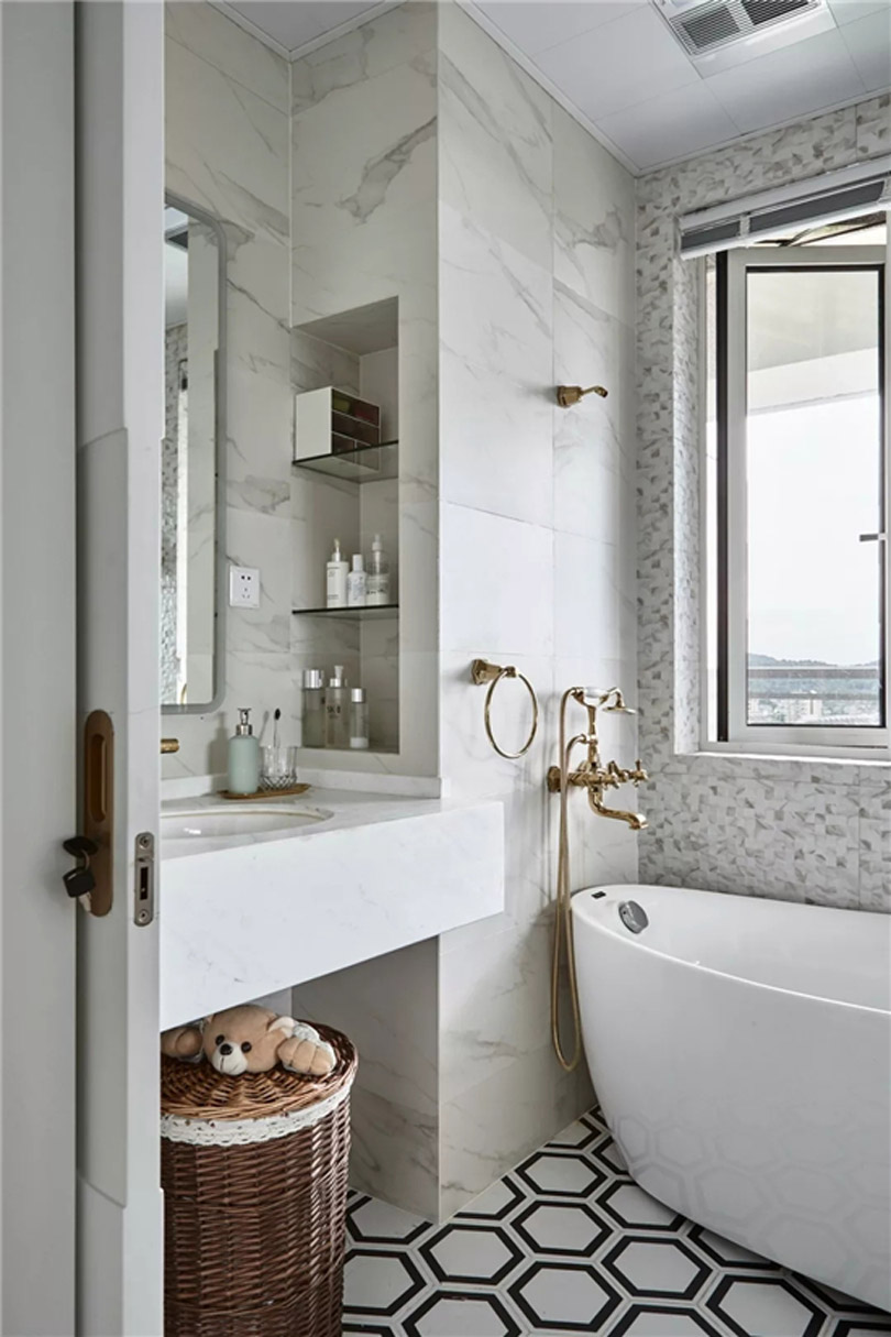 對于衛(wèi)生間來說,肯定會需要做下水管道,同時(shí)也會有新建墻體的出現(xiàn),此時(shí)就可以利用下水管道和新建墻體的位置,巧妙的做出壁龕的設(shè)計(jì),這樣既能解決收納空間不足的問題,同時(shí)又能讓衛(wèi)生間變得更加漂亮,空間更加靈動。