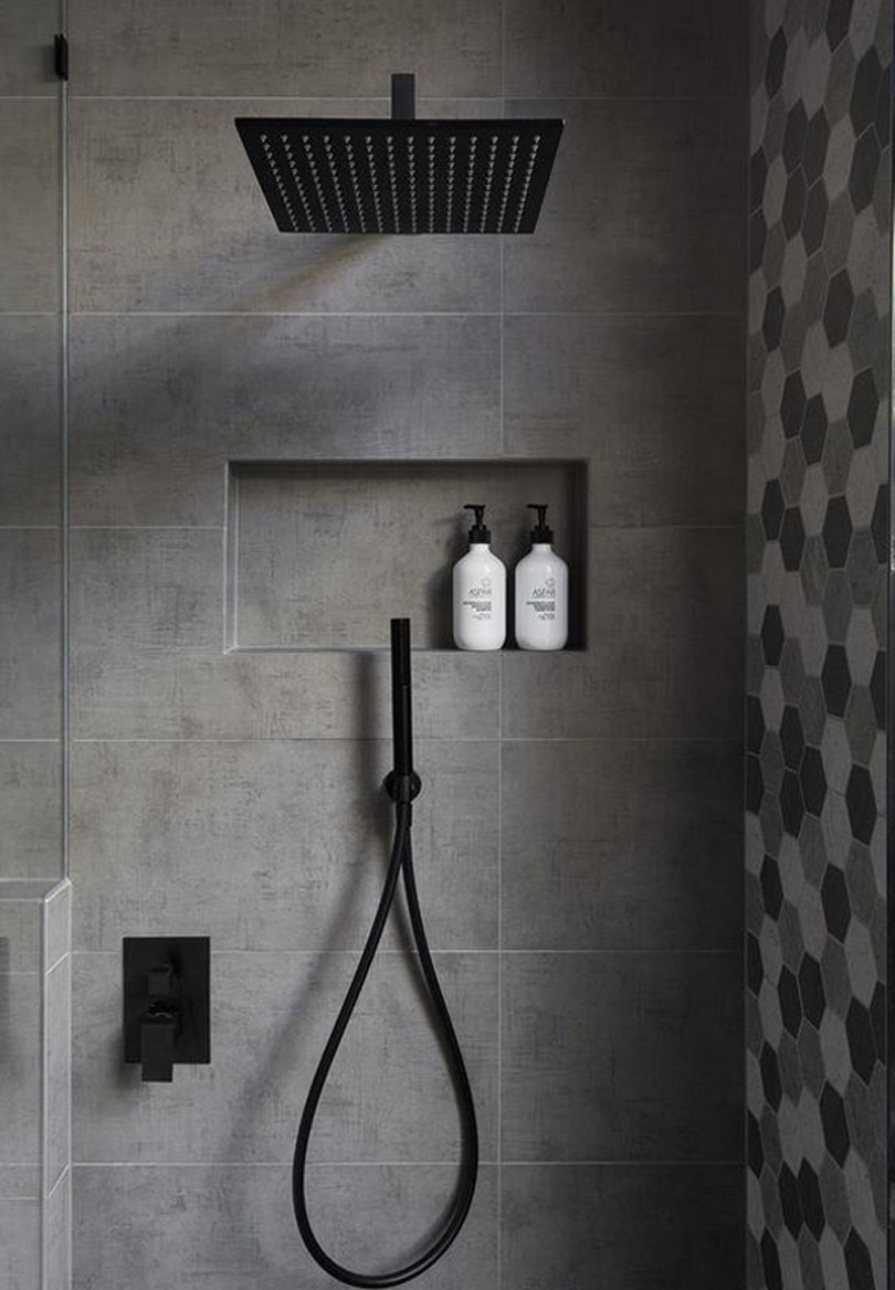 而對于淋浴隔斷的濕區(qū)來話,可以直接利用下水管道位置做出壁龕的設(shè)計(jì),用于清潔用品的擺放,這樣就解決了淋浴隔斷位置的收納空間不足問題,同時(shí)讓淋浴位置更加漂亮,最重要的是在洗澡的時(shí)候就能非常方便的取用存放,順手的動作輕松舒適。