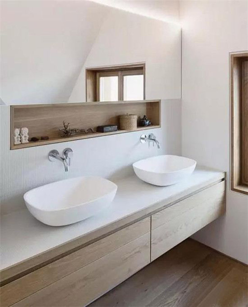 大部分戶型圖中衛(wèi)生間都不是方方正正的,會有各種各樣的不規(guī)則形狀。那么在裝修的時(shí)候如何巧妙的利用這些空間就很有必要啦!在這些不起眼的地方做出壁龕不僅增加了衛(wèi)生間的收納空間,還能使衛(wèi)生間更加美觀,格調(diào)滿滿。