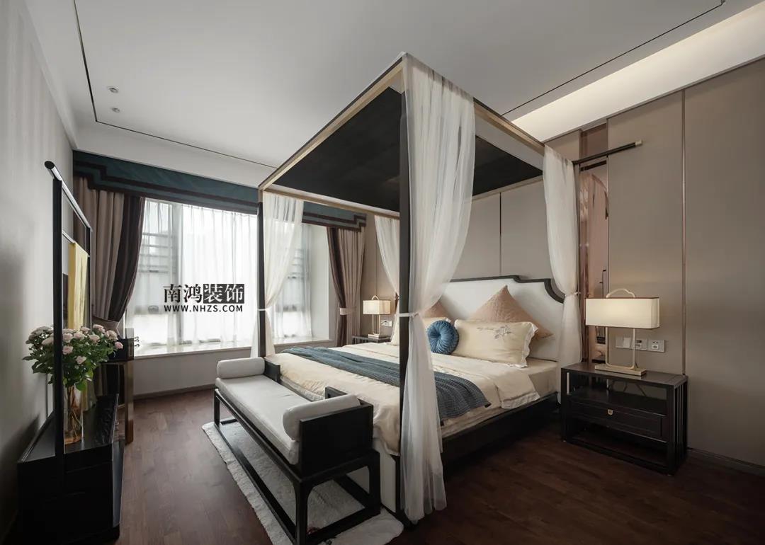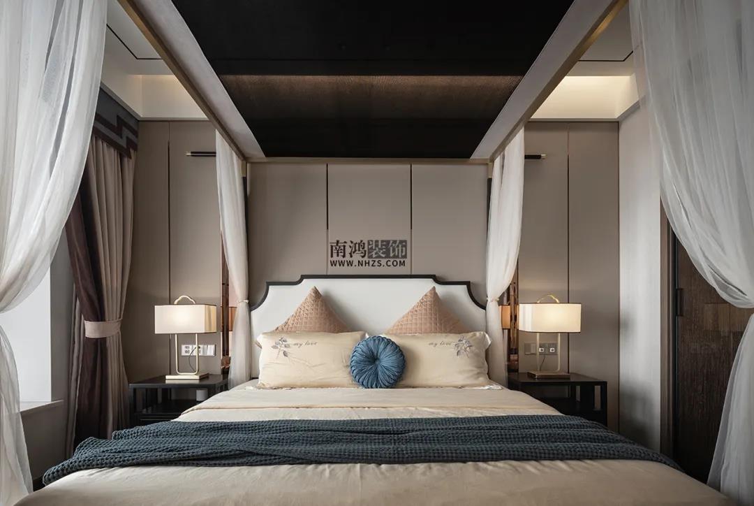主臥背景墻選用淺色的硬包內(nèi)嵌金屬條,軟裝上則應(yīng)業(yè)主的需求,布置得相當(dāng)古色古香,唯美的東方韻味,置身其中,讓人只想隔絕一切喧囂,回歸最真實的恬淡心境。