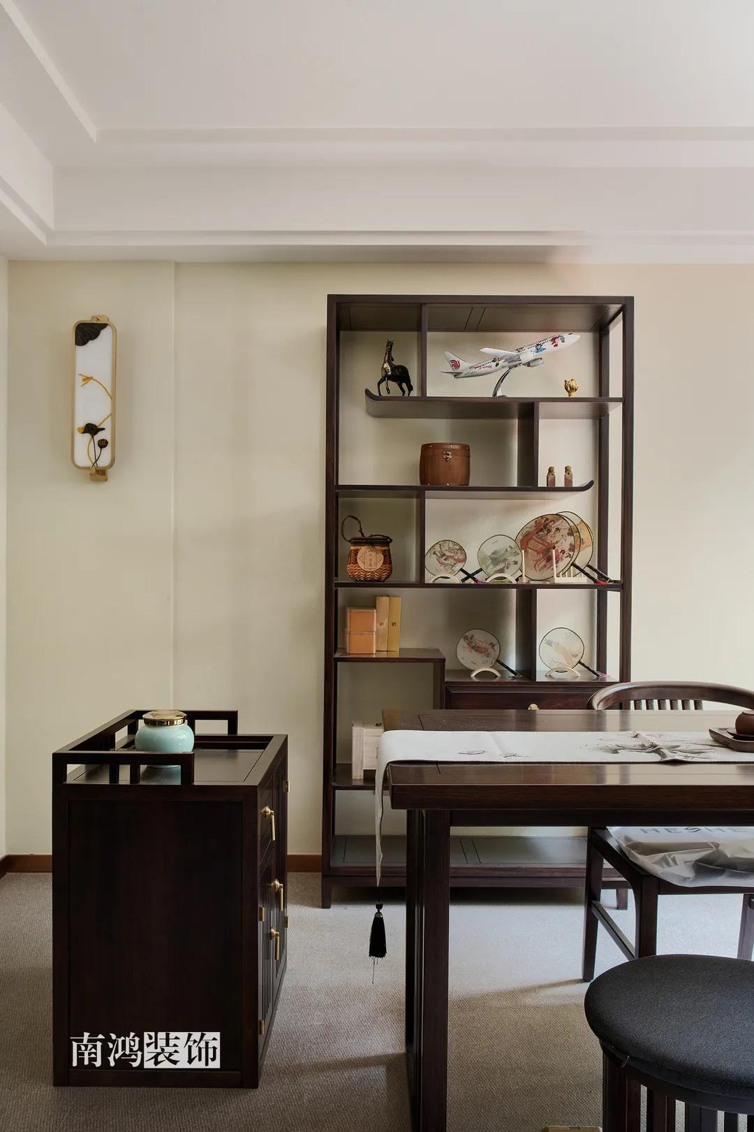 書房,乳白色的漆面結合成品中式家具,主人的所有閑情雅致,都能在這方天地里,怡然自得。