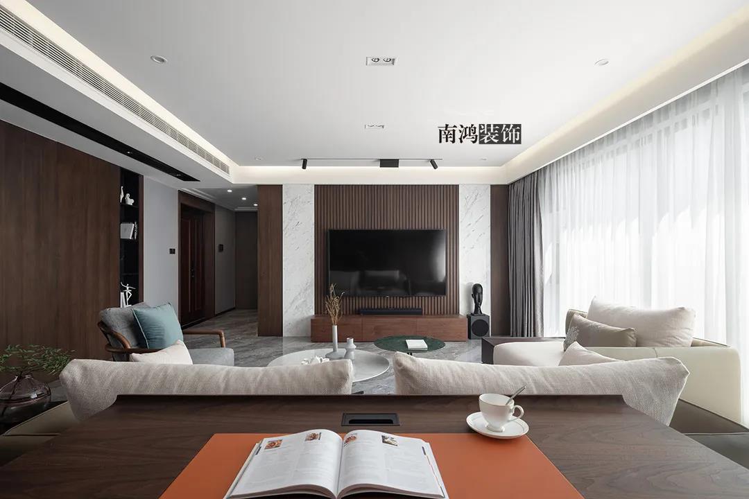 如果想進一步提升裝飾效果,可將線性光源穿插在木格柵之中,讓空間能在光影中盡顯朦朧雅韻~
