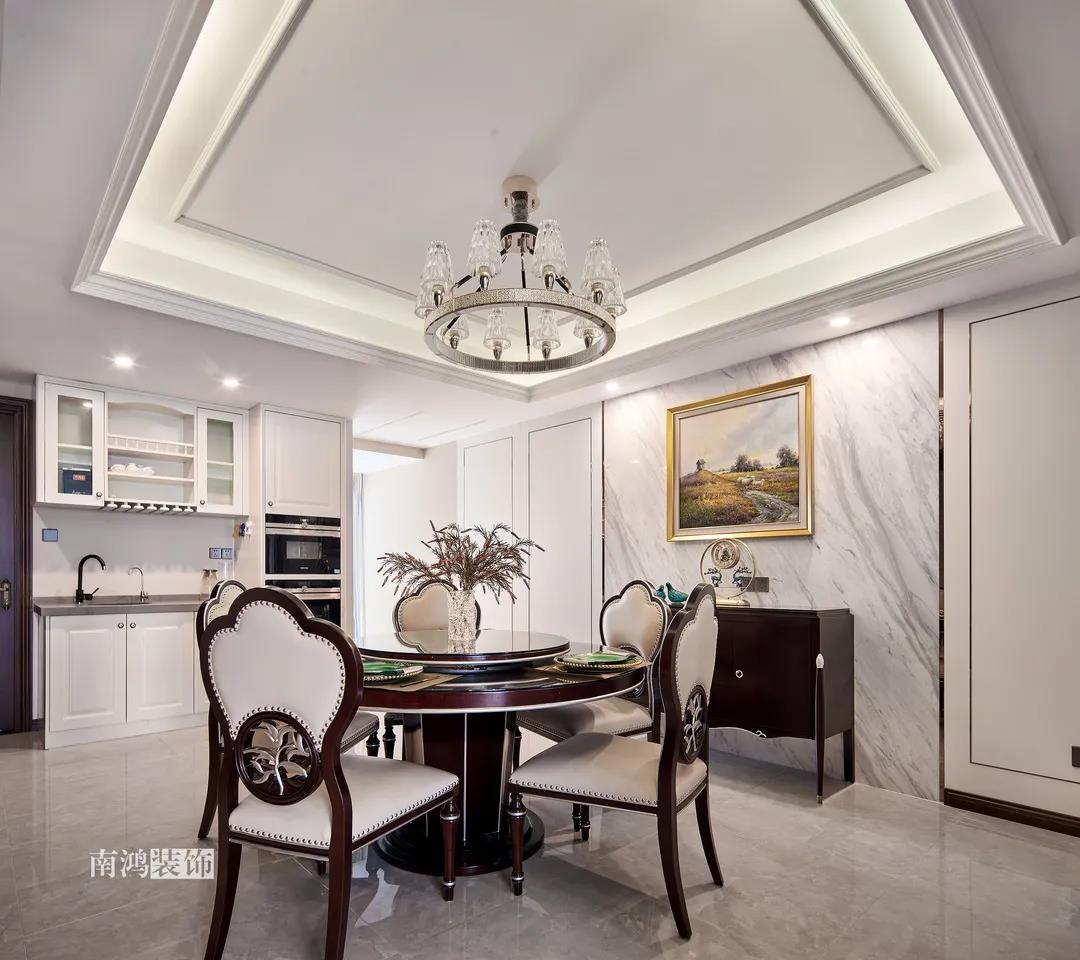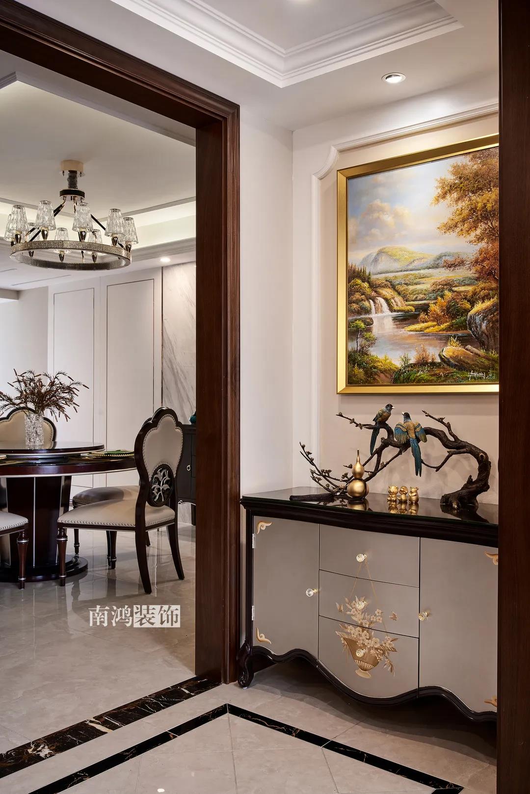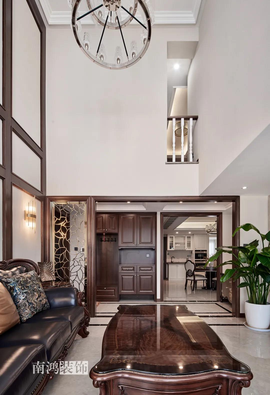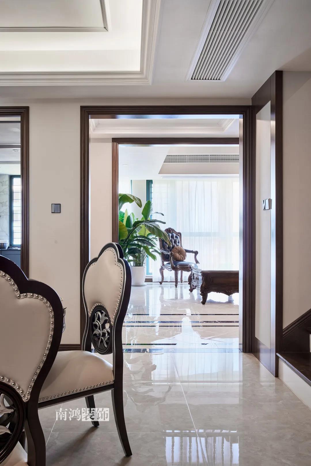 全屋雜糅了新古典、美式、中式、現代等風格的軟裝陳設,不同的空間有著不同的空間表情,想必每日住著看著都能感受到不一樣的趣味~ 01. 玄關 ENTRANCE 正對入戶口的玄關走道,盡頭處用矮柜輔以金框風景畫和擺件打造端景,實現高雅藝術表達。 02. 客廳 LIVING ROOM 轉入客廳,挑高的空間氣勢十足。軟裝材質、色彩選擇,傳達出濃厚的歷史文化底蘊,契合業主對高檔格調的追求,同時在硬裝上簡化線條,空間更加明晰可觀。 為了滿足大家庭的活動需求,設計師將原有的客餐格局重新規劃,一層客廳在最大范圍內打開,讓光線與氣韻流通,形成一個視野開闊、采光良好的會客休閑領域。從這里可以看到二樓孩子的學習讀書角。 5.4米的沙發背景墻自然成為整個客廳的視覺焦點,設計師選擇了護墻板的形式,木板分割出的造型有助于進一步拉伸層高,大氣高級的效果貫穿一二層空間。 客廳是家庭活動的重心,在裝飾上力求凸顯典雅莊重的特點。華貴的深色沙發靠墻安放,金屬鏤空隔斷在壁燈的照耀下泛起光澤,光滑的茶幾表面折射著溫度,優雅利落的奢華感,從種種細節間流露出來。 03. 餐廳 DINING ROOM 家里人口較多,基于實際需求考慮,使用圓桌是最合理的選擇。開放式操作臺兼做餐邊柜,中西結合的餐飲習慣也在這里得到了充分的體現。 04. 廚房 KITCHEN 廚房選擇了傳統的封閉式U型格局。U型廚房可以利用三面墻壁做出充足的儲物空間,動線也很流暢,而且這種封閉式的設計,最大程度地避免了外部用餐空間被油煙侵擾的問題。 05. 樓梯 STAIRS 木白配色的樓梯低調地串聯起上下層空間,原木質感給予家以寧靜,墻上一幅山水畫占據住了視覺焦點。 06. 臥室 BEDROOM 主臥面積寬敞,功能全面,衛生間衣帽間休閑區一應俱全。 睡眠區風格莊重,儀式感足,皮革硬包背景搭配華貴家具,細節處倍感精致。 主臥的休閑區,天氣好的時候,柔和的光線透過窗子灑進陽臺,優雅的主人坐在舒適的躺椅上靜靜品茶、看書,理想中的歲月靜好似乎照進了現實。 女兒房,顏色飽和度都很低,一種純粹的設計和生活方式就這樣被喚醒。 二樓兒童房。兒童房是孩子對色彩、形狀產生最初認知的地方,所以在設計上不僅要注重實用性,更要注重趣味性。童趣主題墻面、云朵狀的床頭、可愛的小掛衣桿,能讓小朋友在這里充分探索未知、創造快樂! 07. 露臺 TERRACE 露臺存在的意義,大概就是:清晨的時候泡上一杯茶,等待陽光喚醒頭腦;傍晚的時候,可以在這里享受晚風、星月,體驗都市生活中難得的一刻放松。再多養幾盆花花草草,讓美好盡情綻放~ 08. 衛生間 BATHROOM 具有現代感的主衛空間使用灰黑色主調,懸空式的長臺盆柜輕盈時尚,燈光布置層次分明,功能性與美感得到了統一。 客衛,玻璃淋浴間實現簡單的干濕分離,金色的水龍頭與臺盆柜把手、落腳更顯精致。 平面戶型圖 -- ·項目信息· 項目名稱:金都華庭 建筑類型:復式 設計風格:混搭 項目地點:中國·杭州 項目面積:230㎡ 項目服務:設計·施工·硬裝·軟裝 全案設計 設計單位:浙江南鴻裝飾 施工單位:浙江南鴻裝飾