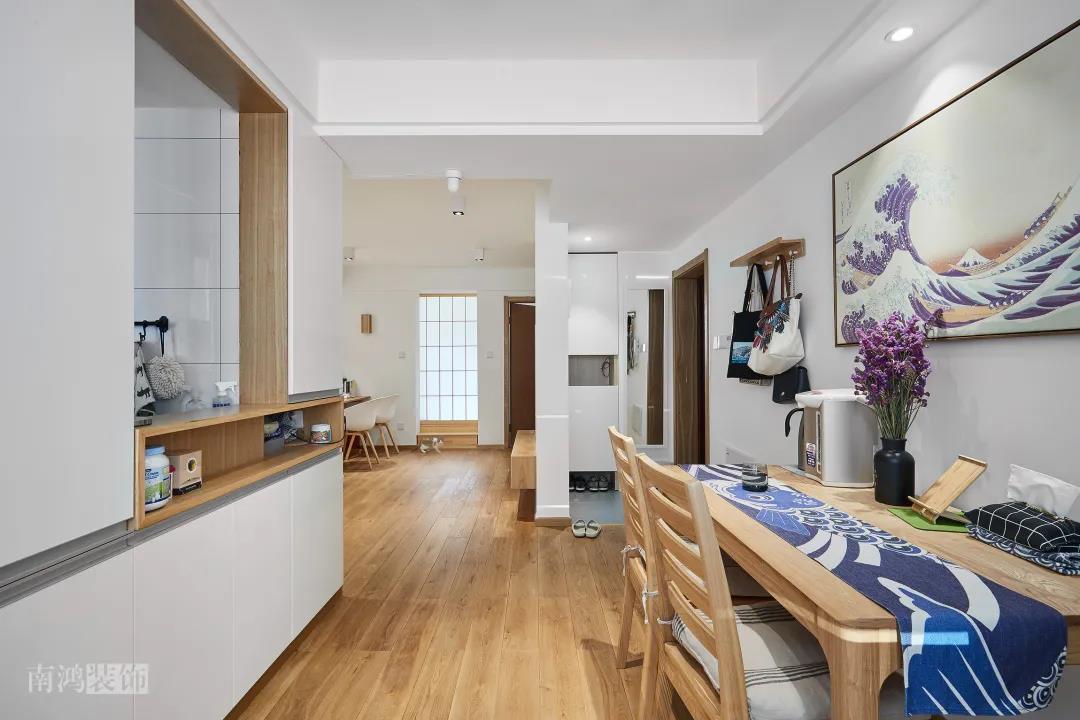 小戶型的餐廳比較適合做嵌入式餐邊柜,利用墻內空間來做收納,能節約不少面積。