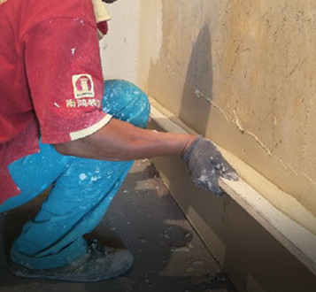 隱蔽工程驗收合格后,泥工進場補線槽局部修補,衛(wèi)生間墻面防潮處理